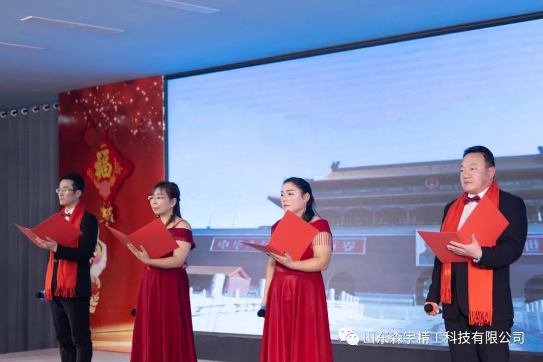 最后一首飽含深情的大合唱一一《我的祖國(guó)》由公司黨支部書記、副董事長(zhǎng)梁娜帶領(lǐng)森宇精工管理人員傾情演唱。激昂之處,引起臺(tái)下觀眾共鳴,大家一起唱起來(lái)!感染了演播大廳的所有來(lái)賓及員工,很多人都流下了激動(dòng)的熱淚。聯(lián)歡會(huì)歷時(shí)一個(gè)半小時(shí),取得了圓滿成功!
