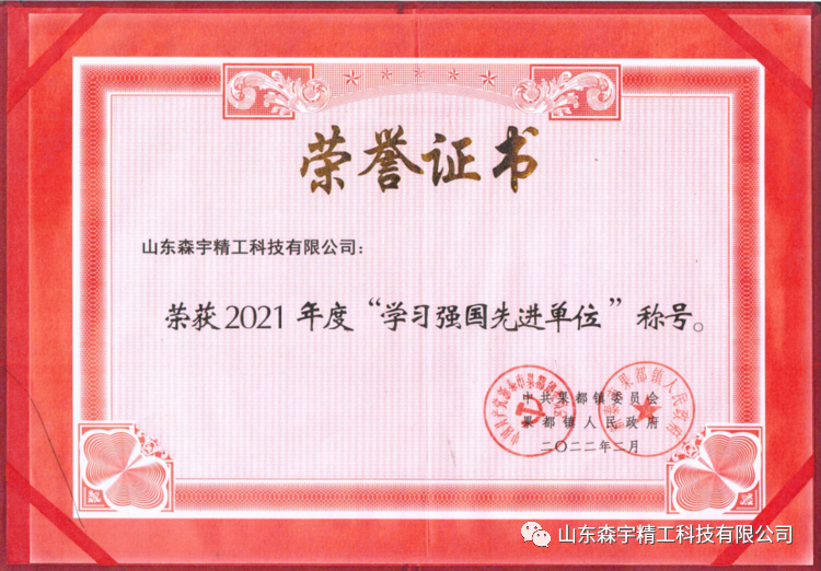 大會(huì)表彰了2021年度先進(jìn)單位和先進(jìn)個(gè)人,森宇精工榮獲2021年度納稅十強(qiáng)企業(yè)、2021年度項(xiàng)目建設(shè)先進(jìn)單位、2021年度安全生產(chǎn)工作先進(jìn)單位、2021年度學(xué)習(xí)強(qiáng)國(guó)先進(jìn)單位稱(chēng)號(hào)。